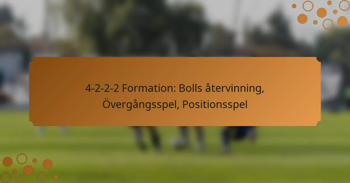 4-2-2-2-formationen är en taktisk uppställning inom fotboll som består av fyra försvarare, två centrala mittfältare, två offensiva mittfältare och två anfallare. Denna formation betonar både defensiv stabilitet och offensiv flexibilitet, vilket gör att lagen kan pressa högt samtidigt som de upprätthåller en stark defensiv struktur. Genom att implementera hög press-taktik och effektiva defensiva övergångar kan lagen snabbt återfå bollen och störa motståndarens spel, vilket leder till dynamiska offensiva strategier.