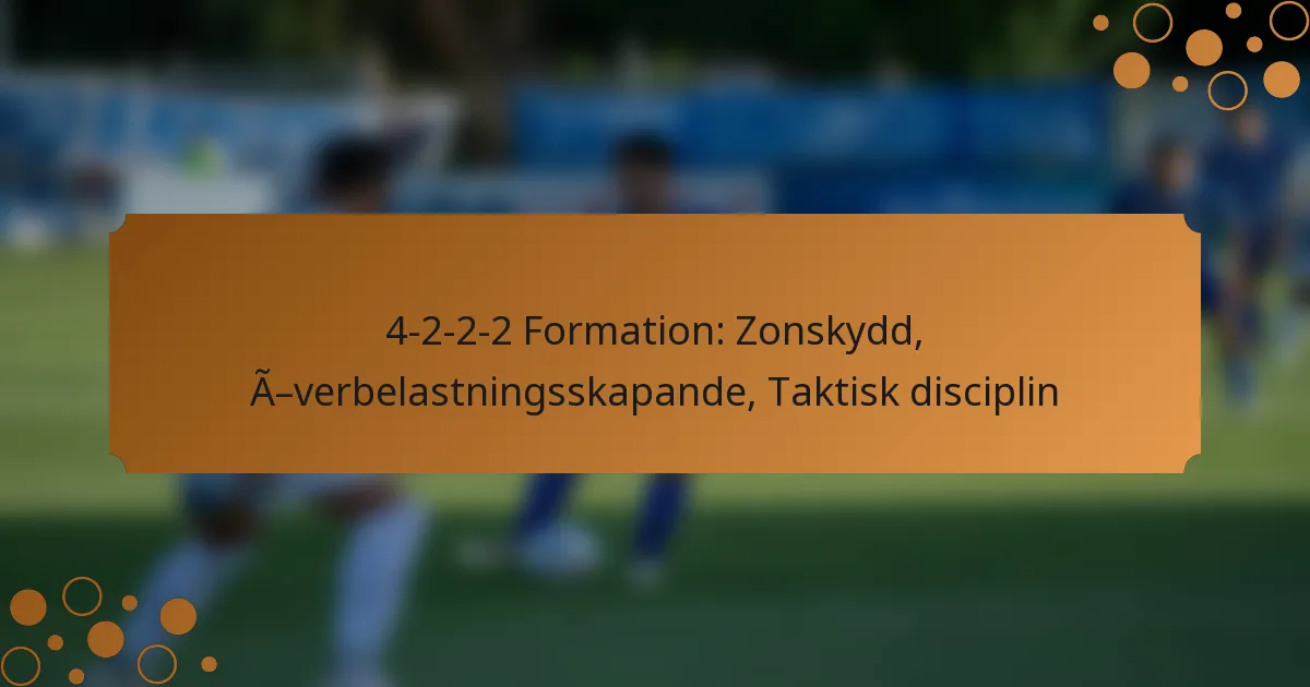 4-2-2-2-formationen är en taktisk uppställning inom fotboll som balanserar defensiv stabilitet med offensiv flexibilitet, med fyra försvarare, två centrala mittfältare, två offensiva mittfältare och två anfallare. Denna formation främjar spelarens synergier, vilket ökar lagets effektivitet genom koordinerade rörelser och kommunikation, vilket är avgörande för både defensiva och offensiva strategier. Genom att prioritera kontroll på mittfältet och dynamiska anfallsmöjligheter kan lag effektivt pressa motståndarna samtidigt som de upprätthåller en stark motattackspotential.